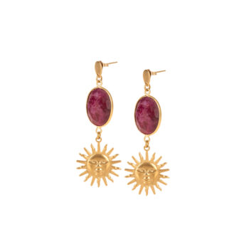 Our “Sole Ruby Earrings” are composed of stainless steel hoops and gold plated silver 925, briole Ruby jemstone. A Mediterranean ode to the Greek islands, that gives you that chic island lifestyle!
