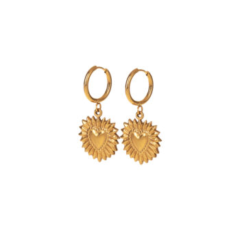 Our “Love Affair Earrings” composed of stainless steel hoops and a stainless steel heart pendant. It’s bold and gives you a powerfull look!