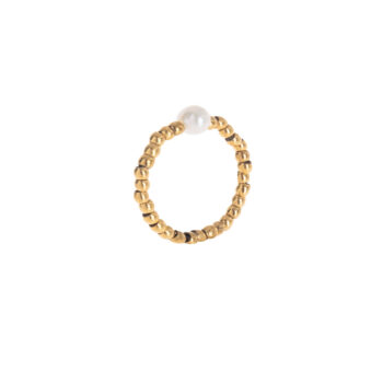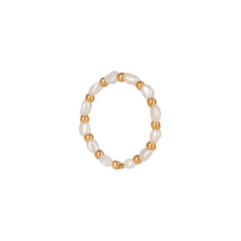 Our “Solo Gold Ring” is composed of a hand selected freshwater pearl and gold plated stainless steel beads. You can stack it easily with other rings from our “Sunday” collection.