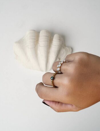 Our “Grace Ring” is composed of freshwater pearls and semi precious gem stones. Invites summer magic into every season and you can stack it easily with other rings from our “Sunday” collection.