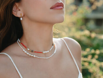 Our “Puglia Cube Pearl Necklace” with handpicked freshwater pearls and stainless steel tubes along with glass cubes. It’s bold but lightweight and can be worn all year round! It takes you back to that trip to Puglia where gelato was all that mattered!