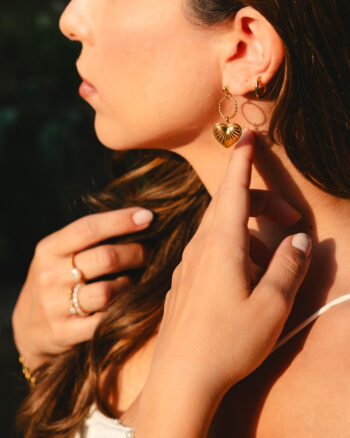 Our “Heart Charm Earrings” composed of stainless steel studs and a stainless steel heart pendant. Pair them with our matching “Heart Charm bracelet” and “Heart Charm necklace” for a luminous, head-turning look!